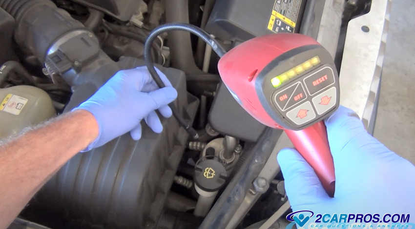 Before you begin testing the system should have a static charge of about 65 psi so the detector can do its job. The engine must be off and the car should be in a place where there is no wind or breeze is present. Any air movement can push the refrigerant away from the actual leak and give you a false reading or make the detection more difficult. One more thing worth mentioning is that refrigerant is heavier than air so try to test below or at the bottom of an object for leaks.