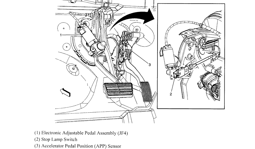 2. Check the Brake Light Switch: On newer cars using a BCM or lighting control module the brake light switch completes a ground circuit which triggers the lighting computer to supply power to the brake lights. Locate the switch near the upper part of the pedal which will have wiring connected to it. Begin by inspecting the wiring harness and look for obvious damage such as a cut, wear mark or broken wire indicating the harness has rubbed against a metal frame causing the failure.