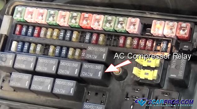 4. If the system has pressure and the fuse is good the next part in the system that has a high failure rate is the AC clutch control relay. This relay supplies main power to the compressor via the system fuse. Locate the relay in the fuse panel or power distribution center using the owners manual.