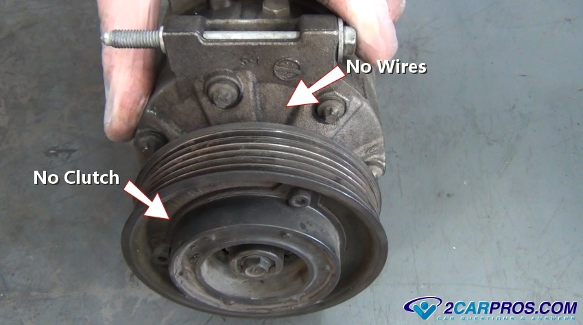 When the air conditioner is switched on three things begin to happen, the compressor, blower motor and vent actuators all receive an electrical signal to turn on. This causes the compressor clutch to engage while working the internal parts of the compressor pump. This pumping action compresses the refrigerant so it can circulate around the system. The following problems are presented in order of popularity.
