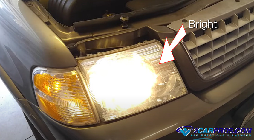1. Turn the headlights on, and leave them on for about 15 minutes (do not start the engine), they should remain bright much like when the car is running.