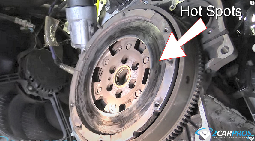 Also, the clutch pedal "free play" will be gone or almost gone letting you know the pressure plate fingers have traveled outward taking up the air gap between the flywheel, disc and pressure plate. This problem is normally accompanied by a burning smell, while the clutch overheats and starts to burn up.