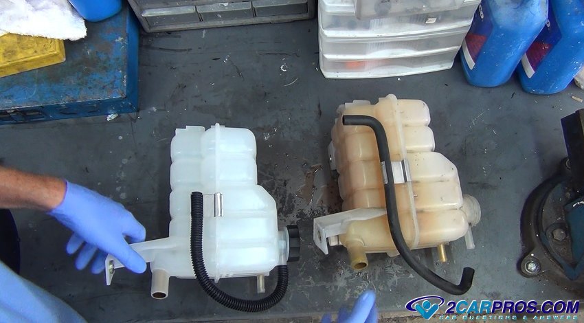 The engine coolant reservoir, also known as the overflow tank, expansion tank, or coolant recovery tank, plays a crucial role in maintaining the engine's cooling system. Because the cooling system works best when there are no air bubbles a coolant reservoir is used to catch the heated coolant and then allow the coolant it to be pulled back into the radiator once the engine has cooled down.