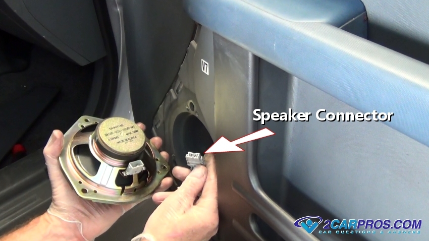 Once the speaker is loose disconnect the wire harness connector by releasing the wiring connector safety clips.