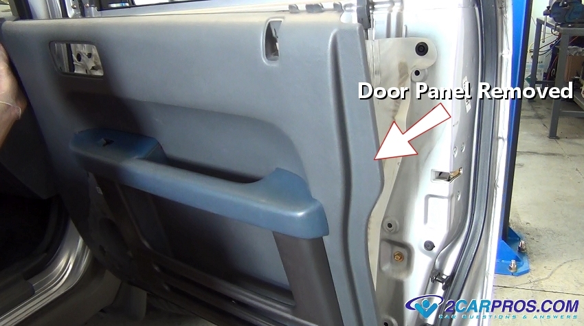 A door panel is used to cover the inside part of the door and hide the inner working of the door accessory's such as the window and door latch mechanisms. This padded cardboard item is held on by a series of screws and plastic clips that must be removed to service such items as a window switch, door lock and window motor and regulator. All door panels basically perform the same task though the process a door panel removal will vary slightly for each vehicle. In most cases a novice can perform this job. Once the door panel has been removed be cautious of how it is stored during the repair. Most door panels are made of cloth and can pick up dirt and stains easily.