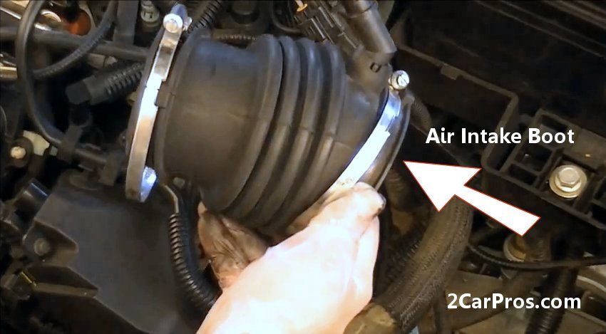 4. The air intake boot or tube, transfers air from the air filter to the mass air flow sensor into the throttle actuator and then into the engine intake manifold. If there is a problem with these parts such as a tear or rip it will allow un-metered air into the engine which the computer will see via the oxygen sensor and will try to richen the mixture but only to a certain extent, which may not be enough to compensate for the problem creating a lean condition. Remove the air intake tube or boot an check for tears or breaks in the integrity of the parts