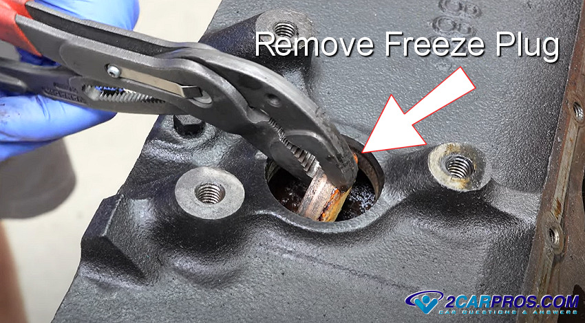 3. Remove Freeze Plug: Use a pair of channel locks to help grasp the freeze plug and pull it from the engine block, this can take some doing so hang in there.