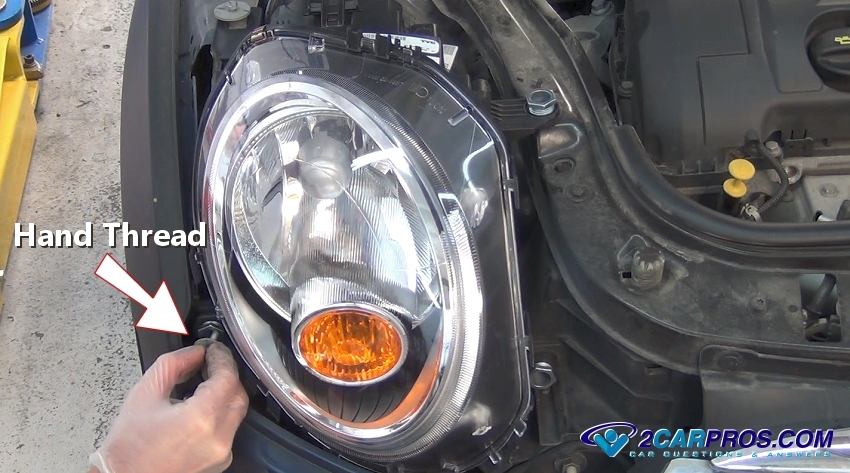 Hand thread headlight lens mounting bolts to avoid cross threading.