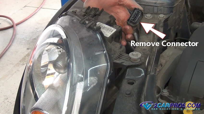 if damaged, then reinstall the connector to the headlight lens receptacle.