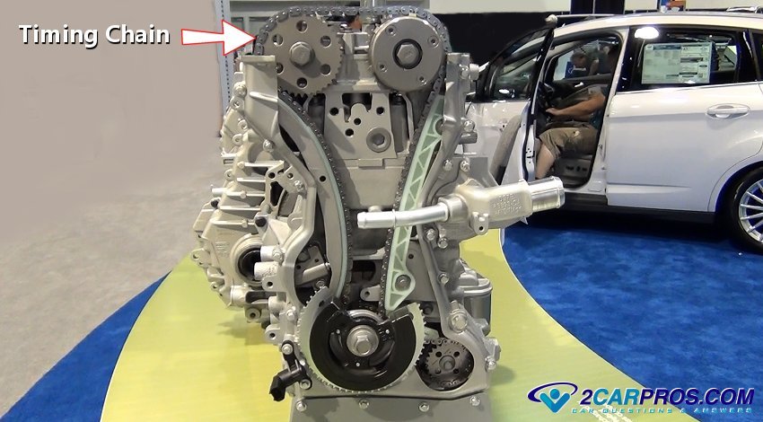 A tensioner is used to keep the slack out of the timing chain or belt which is necessary to hold the chain or belt from jumping time while the engine is running. The timing chain or belt is driven at the crankshaft using a drive gear near the front main seal and harmonic balancer.