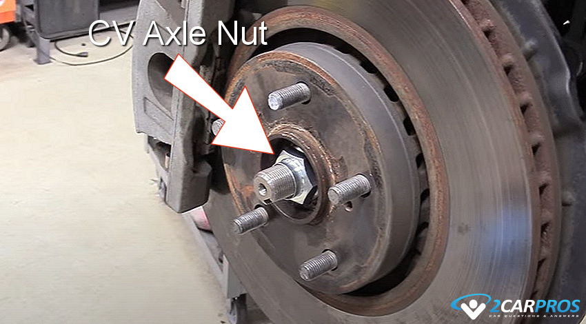 On the outboard part of the CV axle, is the CV joint which protrudes through the bearing hub in which an axle nut is attached, this nut must be very tight, in some cases up to 140 foot pounds of torque.