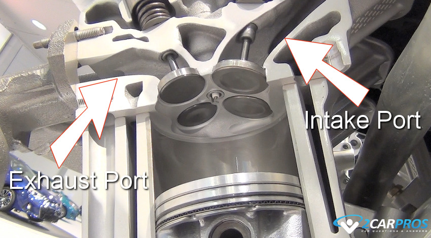 Intake and exhaust valves and ports are designed into the cylinder head to help allow the intake charge enter the combustion chamber, and post combustion, for the exhaust gasses to exit the engine.