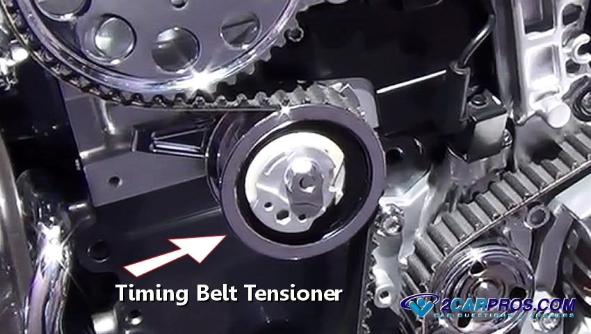 The timing belt tensioner is used to hold pressure on the belt which is spring