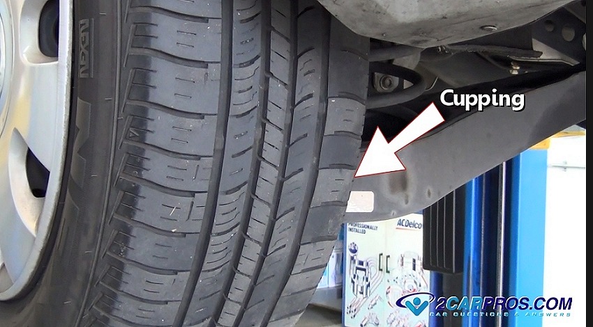 Tire cupping is caused by a tire being out of balance, or a worn strut or shock