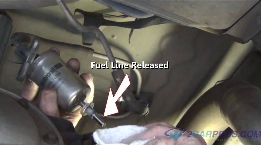 Once released pull the fuel line away from the filter, small amount of fuel will leak when line is removed, match and reinstall the new filter.
