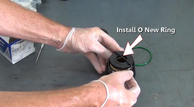 After using a shop towel to clean the housing and O ring gland install the new O ring seal and wipe clean.