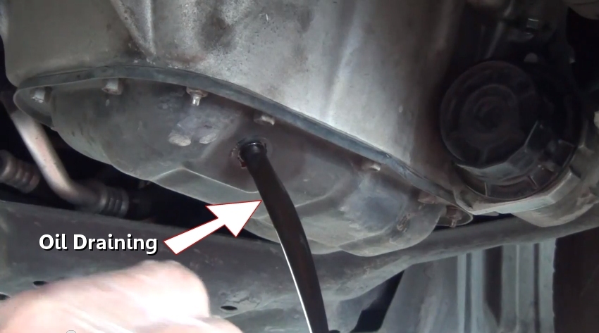 While having an oil catch basin ready slowly start removing the drain plug by hand. Once the plug is loose from the pan oil will begin the flow so be ready.