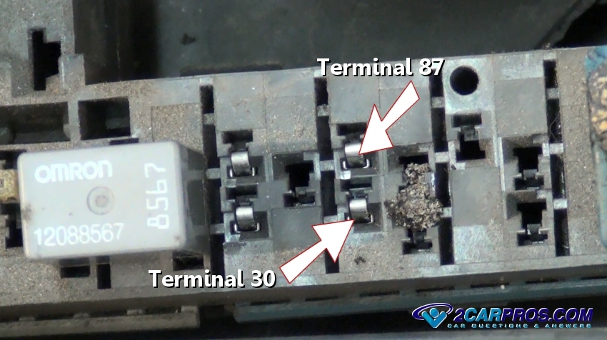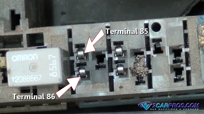 Step 1 - To test for intermitted relay failures which are common, remove the relay in question, take a small wire strand, about two inches long and insert it into the relay connector terminal 87 or 30.