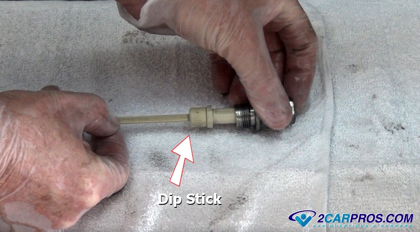 Reassemble the level gauge back into the plug and reinstall back into the transmission