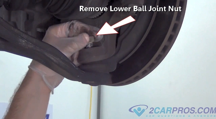 5. Once the ball joint has released finish removing the lower ball joint nut and continue with the repair. We will demonstrate the upward style of ball joint below.