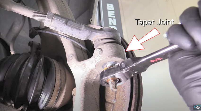 4. When the ball joint taper joint releases, there will be a noticeable gap between the ball joint dust boot and the spindle. The gap between the ball joint nut and spindle will also be gone.