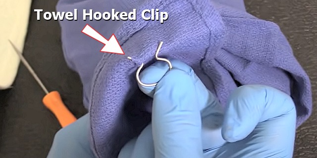 fibers of the towel to grab the C retainer clip and remove it from the crank handle
