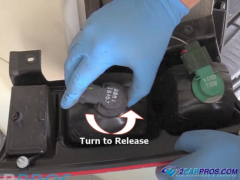 5. Grasp the light socket and twist it counterclockwise to remove the brake light bulb assembly. Some vehicles will require you to remove the bulb mounting plate from the lens to access the bulbs.