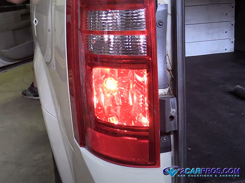 1. Locate the brake light bulb that is not working by having a helper press on the brake pedal while you watch. In the image below the driver's side bulb is out and needs to be replaced, which we will do in the following guide and video below.
