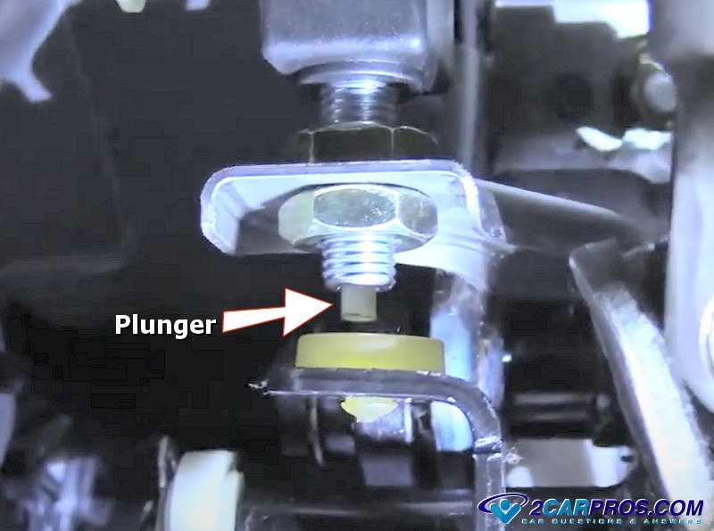 7. In the image below, you can see how the brake light switch is correctly adjusted, with the switch plunger depressed. If the plunger is allowed to protrude from the switch with the brake pedal in its neutral position the brake lights will stay on.