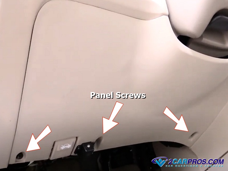 1. To access the brake light switch you will need to remove the lower dash cover which is held in place by two or three screws near the bottom, and snap clips at the top. Remove the screws and gently pop the panel loose to remove, and set it to the side.