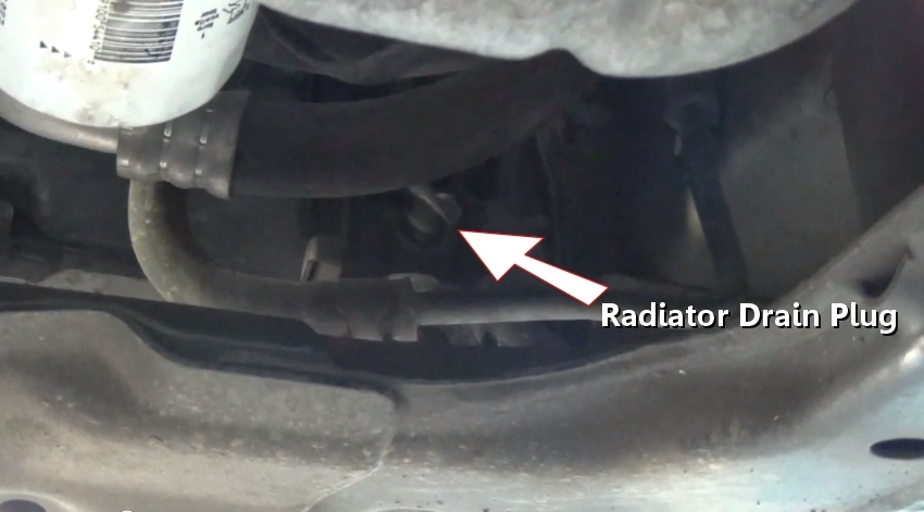 After removing the lower shielding, locate the radiator drain plug and start