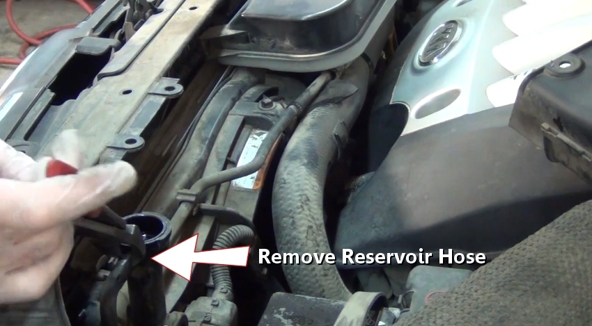 stuck so a twist could be necessary. Once free, remove the coolant reservoir from