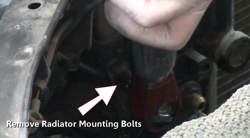 Once the transmission lines have been removed, locate the radiator mounting bolts