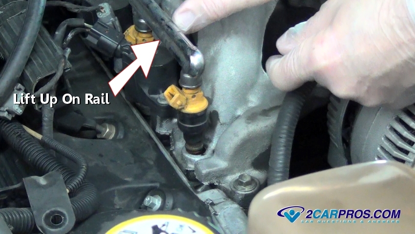 the fuel injector and work the injector from the rail. Keep a shop towel handy