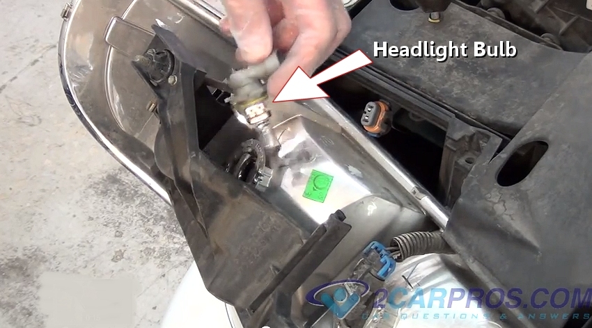 A headlight bulb uses more amperage than other bulbs in the lighting system so it a good idea when you are changing the bulb out to inspect the electrical connector for heat damage. If the headlight bulb socket is not accessible the headlight lens may need to be removed or obstructions behind the bulb removed to gain access to the headlight bulb socket. Some headlight bulbs can be replaced by simply grasping the bulb socket behind the headlight lens and turning it counter clockwise to remove it. This will expose the headlight bulb.