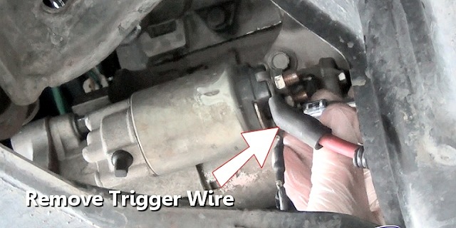 starter trigger wire from the rear of the starter solenoid, note the position of