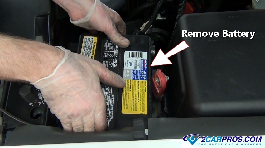 the battery firmly and remove it from the engine bay and set to the side, (Caution: