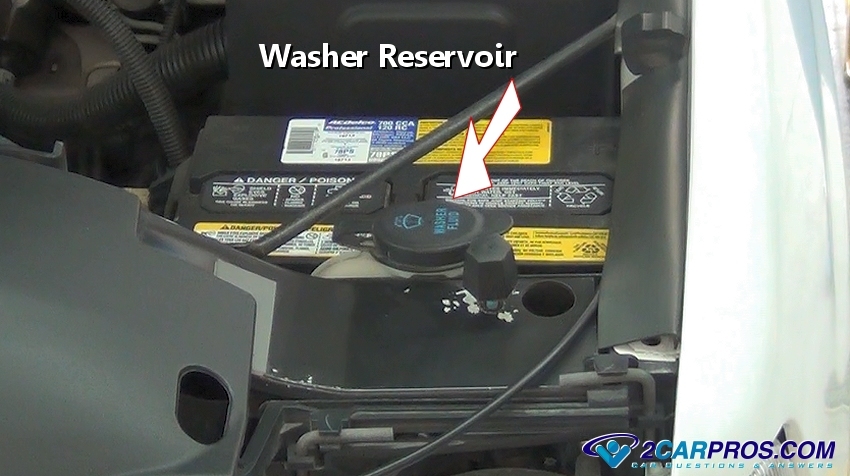 The washer fluid reservoir location will vary, in this case it is under the battery,