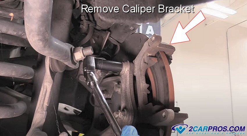 4. On some cars the brake rotor will be able to be removed at the this point, but most will require you to remove the caliper mounting bracket which will be held on by two bolts from behind.