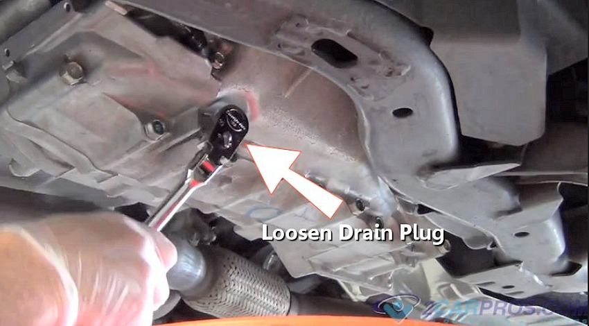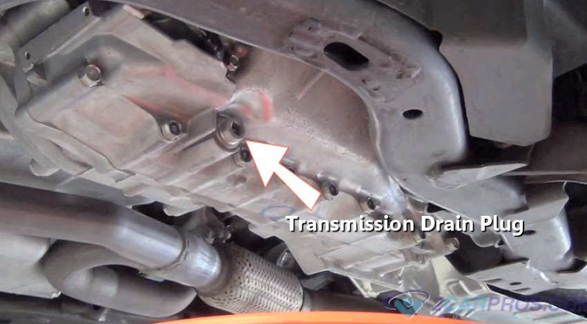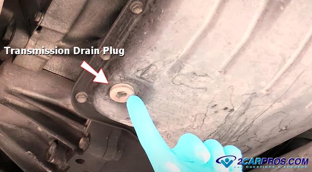 Locate the transmission fluid pan, some pans have a fluid drain plug, insert