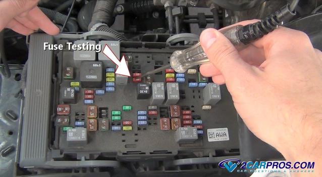 1. The blower motor unitizes power from a fuse or relay in the PDC (power distribution center). With the key in the "ON" position test the blower motor fuse which can be identified by the fuse box cover or in the vehicles owners manual. Visit - Fuse testing If fuses are okay, proceed to next step.