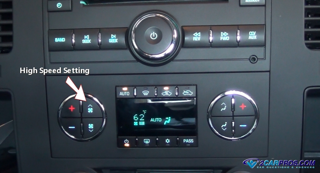 2. With the key in the "ON" position turn the fan switch to the high speed setting, then to the medium and low speeds. If the fan motor works in the high speed setting only visit - Blower fan motor works on high setting only