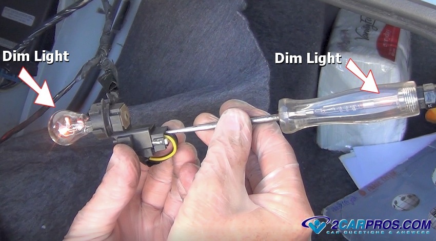 When a bulb is dim such as a headlight and brake light it usually means the power