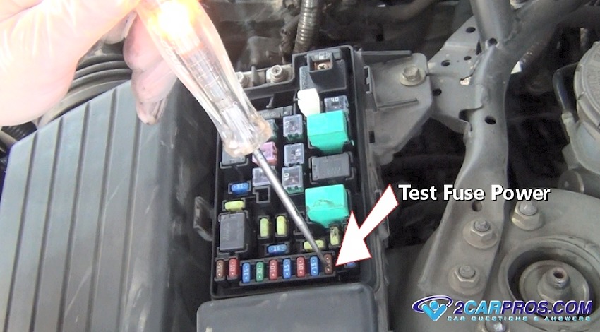 A popular use of a test light is to check for power and the condition of the fuses in the fuse panel or power distribution center (PDC), this should be the first check when a particular accessory such as door locks, lighting or power windows are not working. If you need the locations of a fuse or electrical item such as a fuel pump relay you can ask our experts to supply the information (free), or consult an online resource such as AllData DIY (pay).