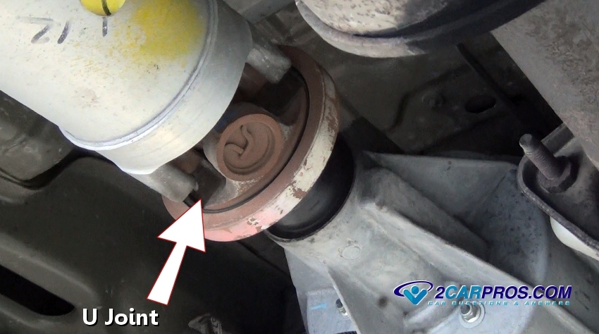 The forward or front U joint is located near the rear of the transmission and