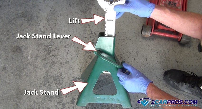 Once the front is lifted, position and adjust the jack stands under the main