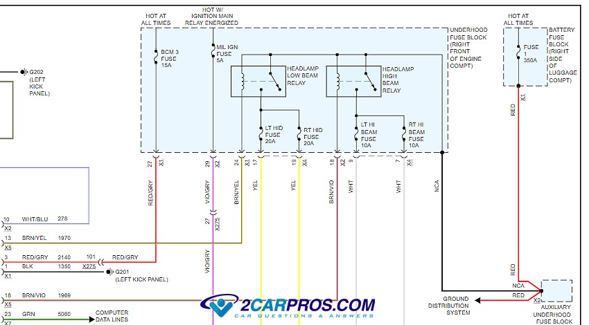 system is energized (on). Locate the headlight system fuse using the cars owners