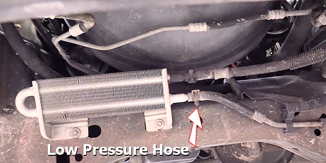and pinion. Locate the low side or return hose by discovering which hose is held