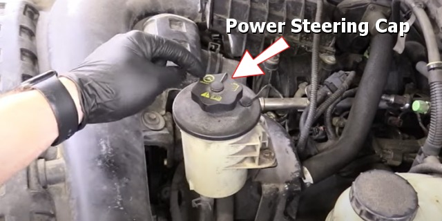 and turn the steering wheel in both directions (one time) while you are adding fluid