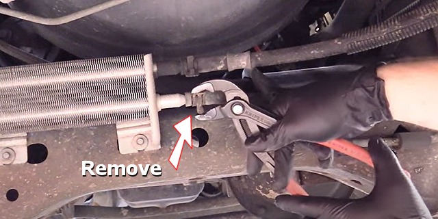Using a hose clamp removal tool or pliers remove the hose from the fitting, fluid